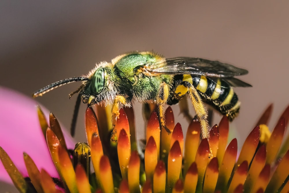 Focusing on that last one for a second, sweat bees have fuzzy hair like many other bees. These hairs naturally collect pollen when the bee visits flowers in search of nectar. Sweat bees aren’t as fuzzy as bumblebees, but both of these bees are important pollinators.