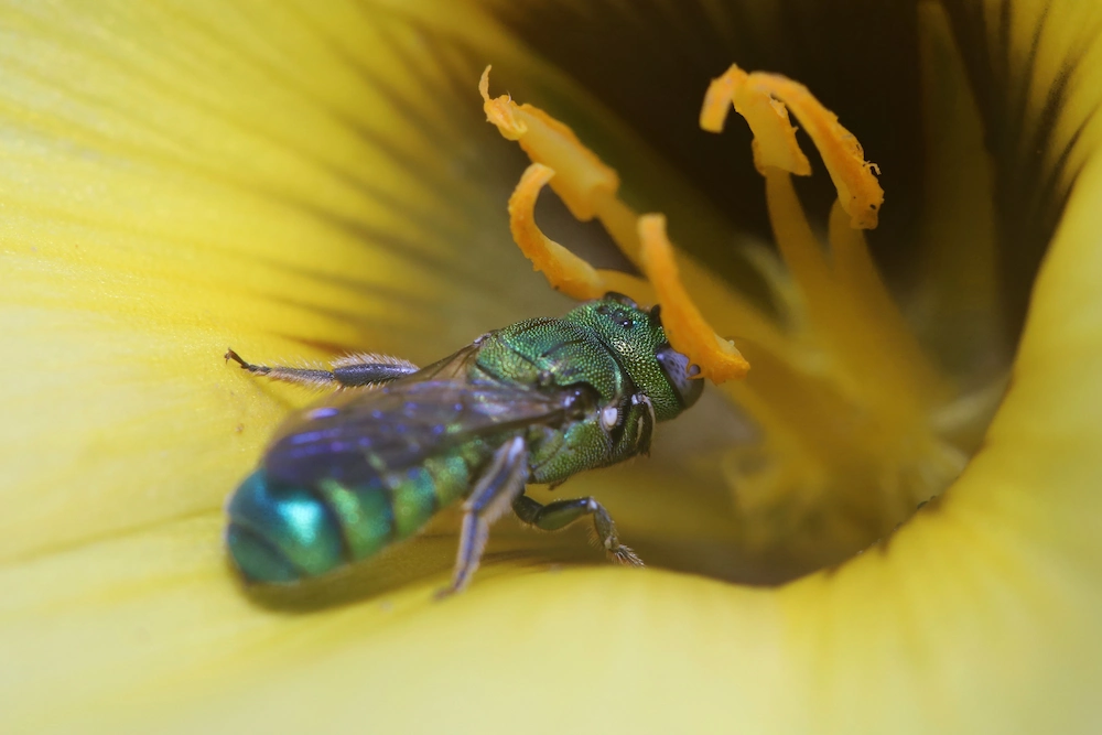 Regardless of their social status, sweat bees use a special tool to identify their homes after a long day of foraging. Lactones have chemical signatures that are unique to each bee and therefore unique to every nest. It’s similar to how ants and termites use pheromones to communicate with their own colonies.